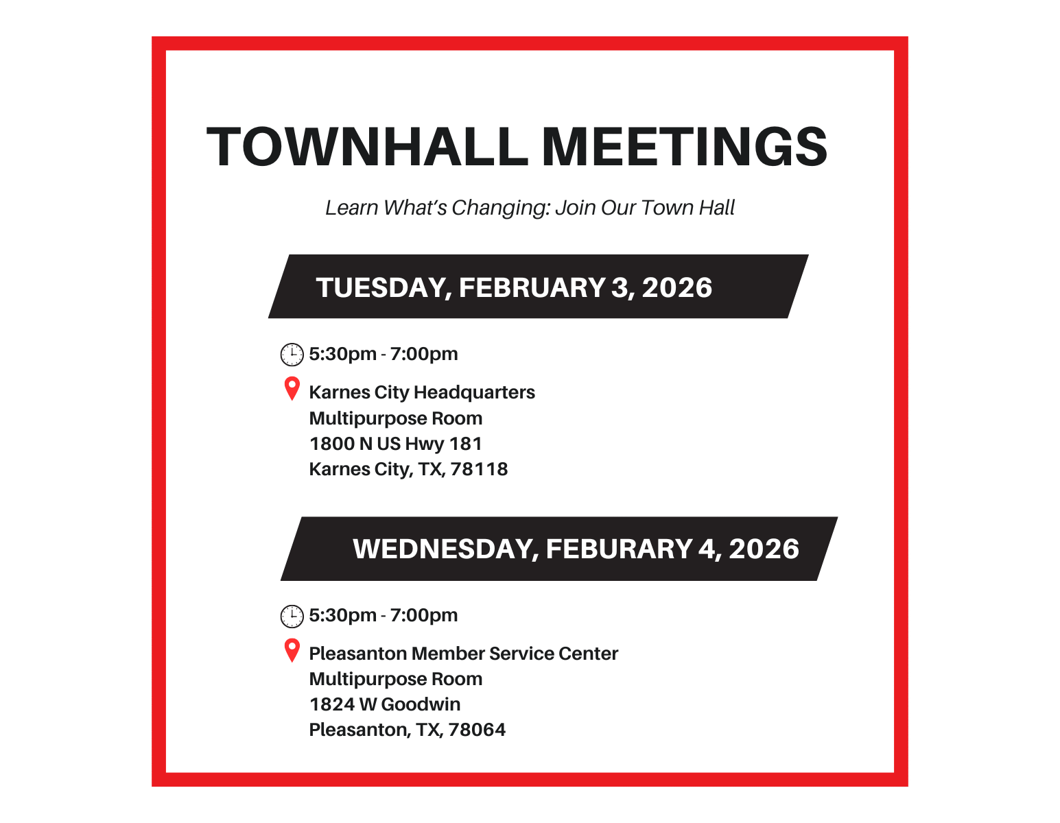 Join us for our upcoming Town Hall Meetings!